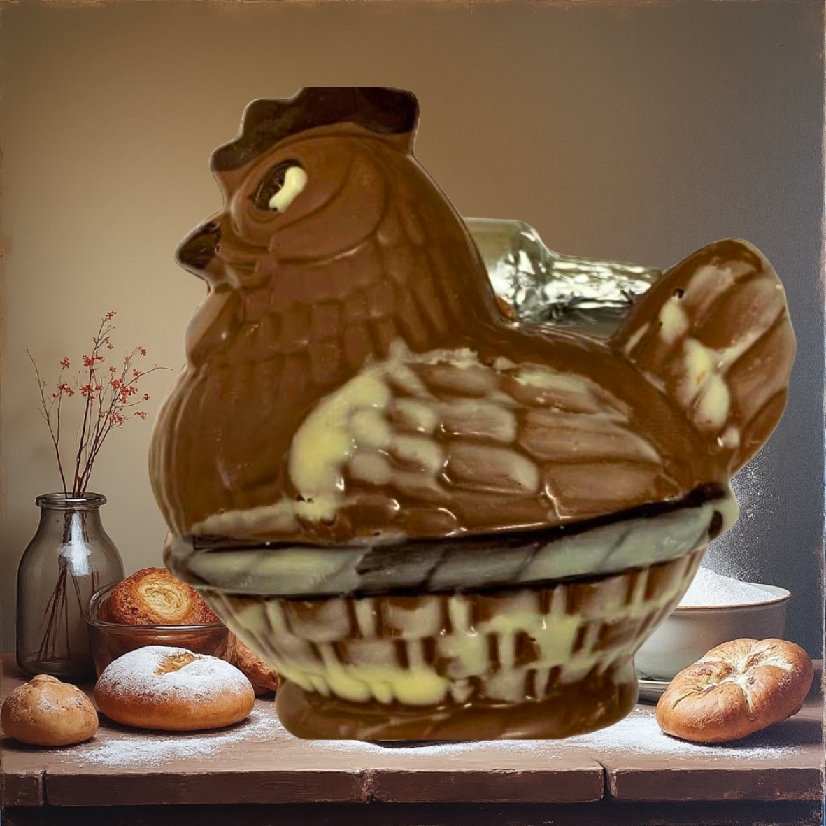This are our Chickens handmade with our quality chocolate couverture, you will receive one Chicken which you can have personalised with a name.