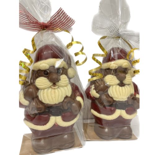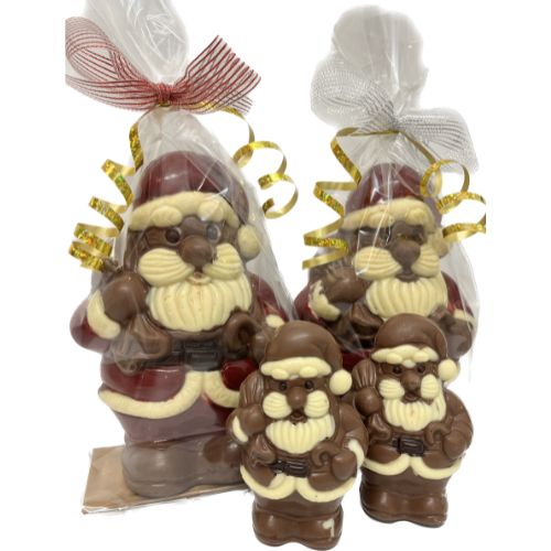 This are our belgian chocolate santas handmade with belgian chocolate, these items can be personalised with a name. Please choose from small medium large and XLarge ( xl santa is a heavy item which needs to be collected)