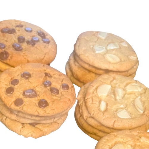 These Cookies are the 40 gram smaller cookies made with the finest quality ingredients,packed in 8's. I use local free range eggs, Belgian chocolate chips and no packet mixes.