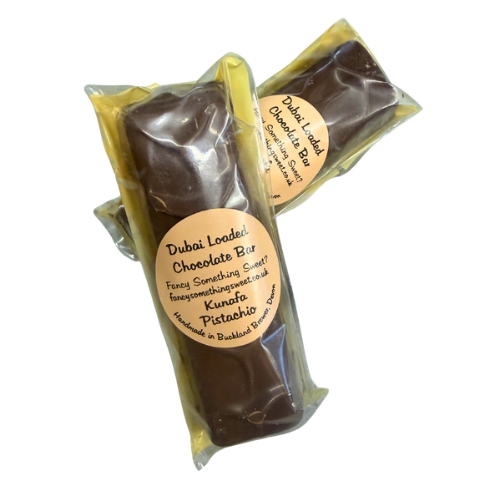 This is our bespoke Pistachio bars with our crunchy Kunafa and pistachio cream layer all enclosed in a delicous Belgian chocolate shell,