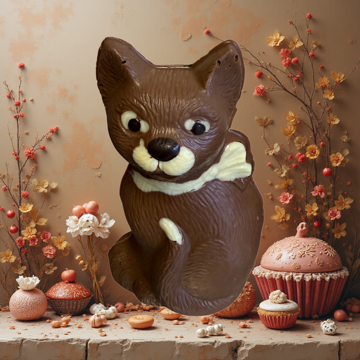 This are our chocolate cats handmade with our delicious chocolate couverture , these items can be personalised with a name. You will receive one cat, please choose from small and large