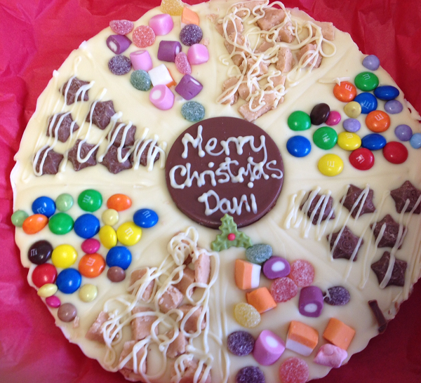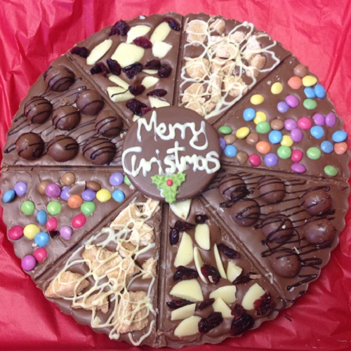 This is our Chocolate sweet pizza, 10 inches wide, chocolate weight 500g. Topped with a selection of sweets and our homemade fudge! Personalised just for you with a name or a message! Please place your order and allow 2 days before dispatch as they are all hand made to order. Your Chocolate pizza will be packed in a novelty pizza style box and on a bed of bubble and tissue paper and padded for a safe delivery.