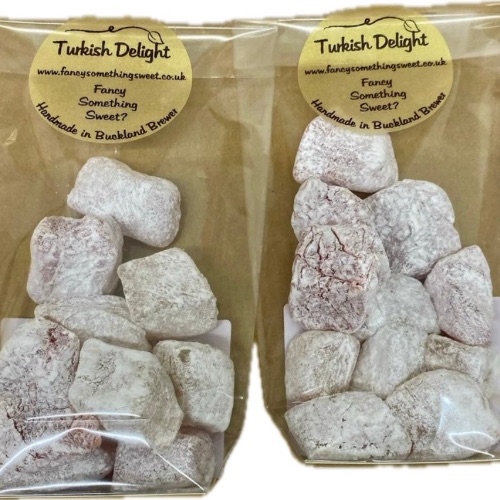 Homemade Rose, lemon turkish delight loose in a paper bag, box or clear bag from £2.60 per 100g